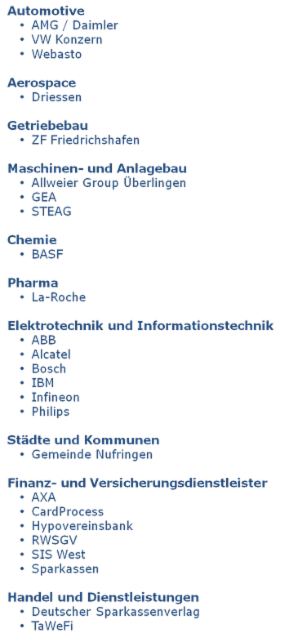 Unsere Berater haben in folgenden Branchen und für die aufgeführten Unternehmen erfolgreich Projekte umgesetzt: